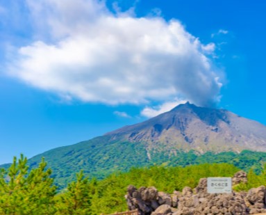 2) 사쿠라지마: 규슈 남부, 별칭 "긴코 만"이라고 불리는 세계에서도 유명한 활화산인 사쿠라지마는 긴코만을 사이에 두고 가고시마에서 4km 떨어진 화산으로 가고시마의 상징이라 할 수 있으며, 사쿠라지마의 둘레는 52km이며, 기타다케(北岳 1117m), 나카다케(中岳 1060m), 미나미다케(南岳 1040m) 등 세개의 봉우리가 연이어 있으며 미나미다케는 지금도 활발하게 화산활동이 진행중입니다.